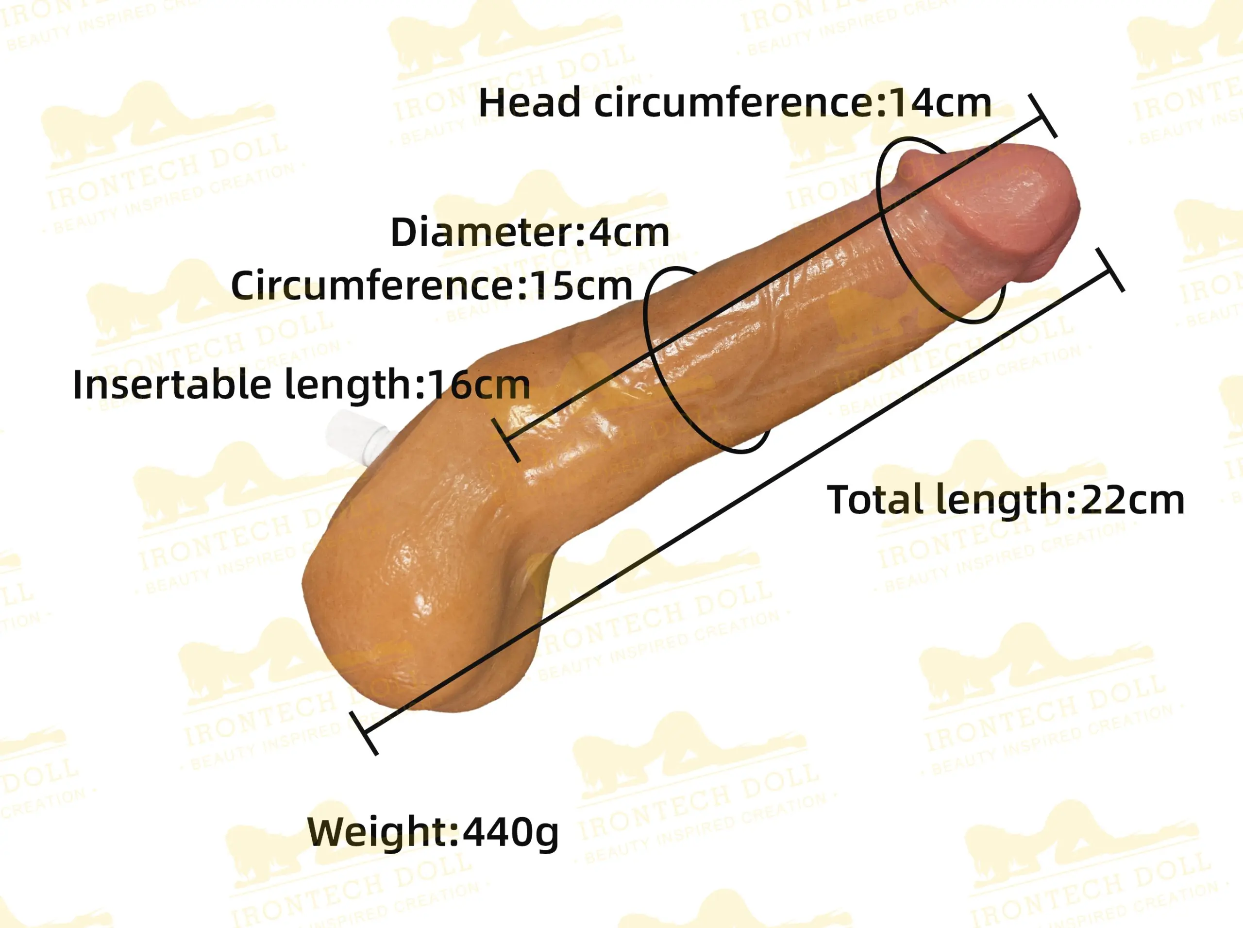 Matériau sans danger pour le corps : un gode réaliste en silicone qui ne pèse que 400 g. Le gland réaliste, les veines simulées et les testicules réalistes vous procurent un fort impact visuel ! Compatible avec toutes les poupées masculines en silicone Irontech Doll.